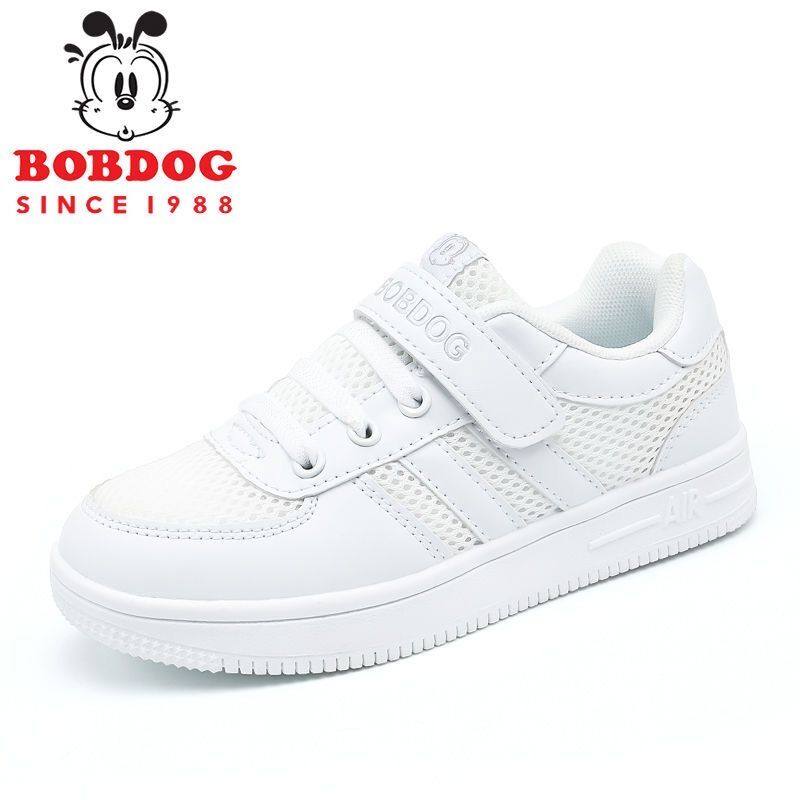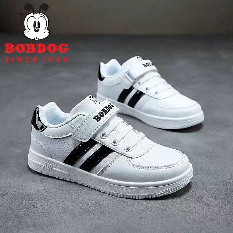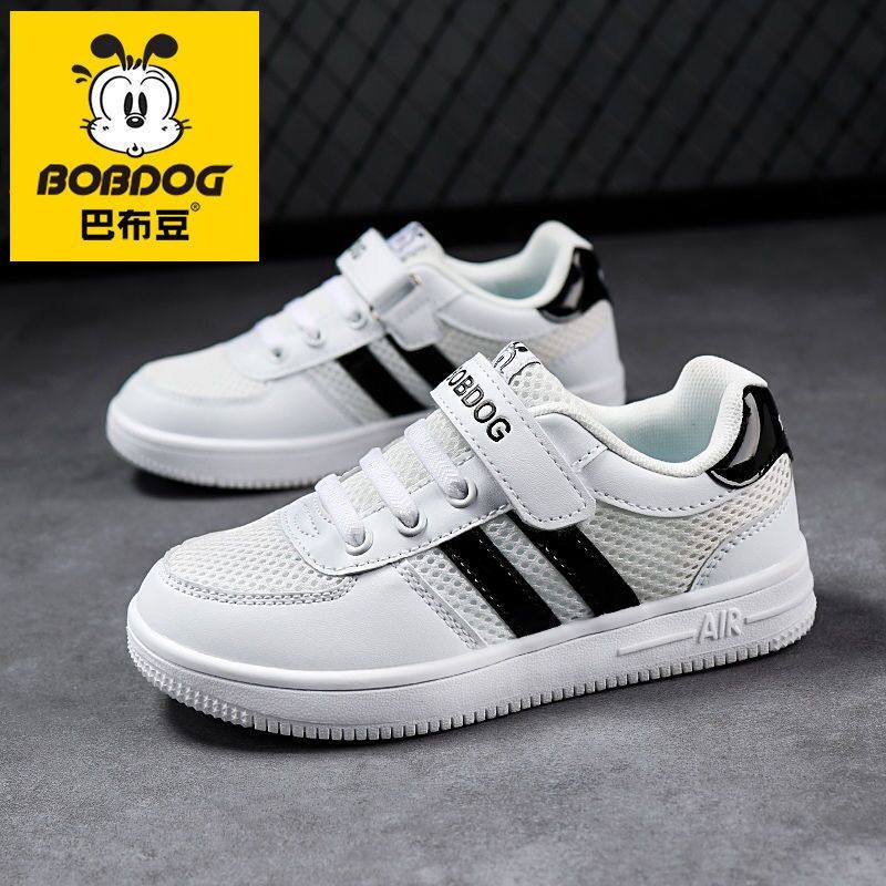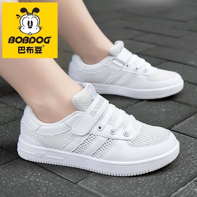 巴布豆小白鞋女白色运动鞋男童皮面防水休闲球鞋中大童小学生白鞋