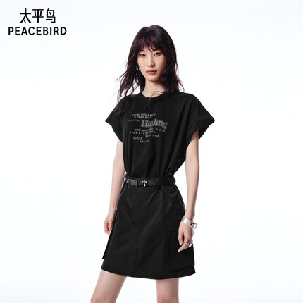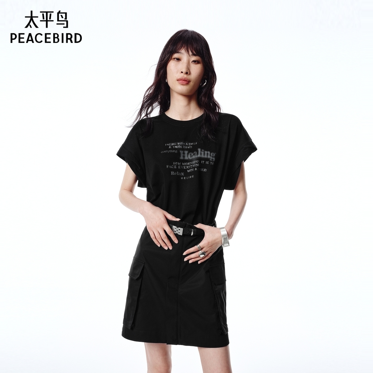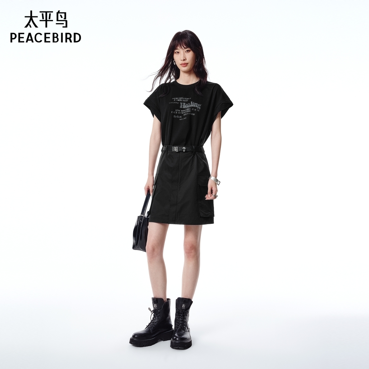 【商场同款】太平鸟女装2025夏季新款T恤拼接连衣裙A3FAF2331