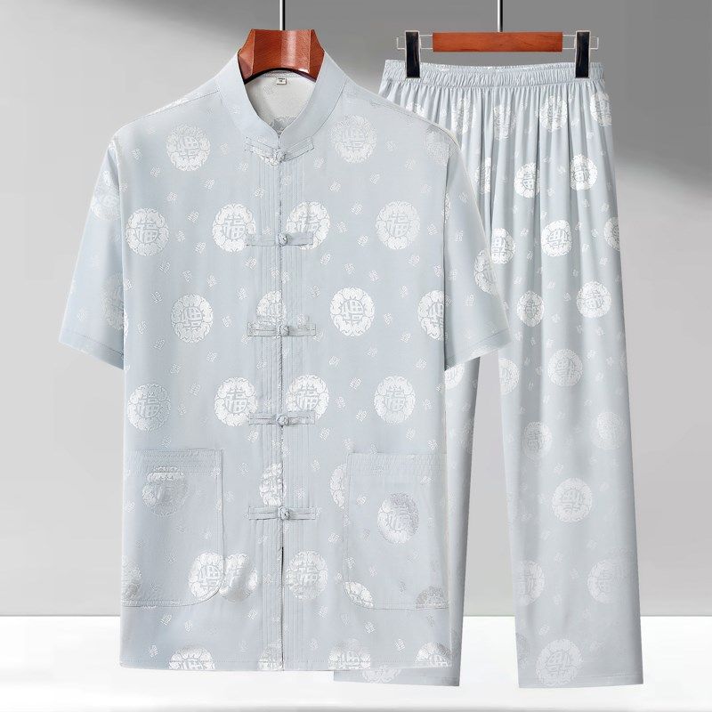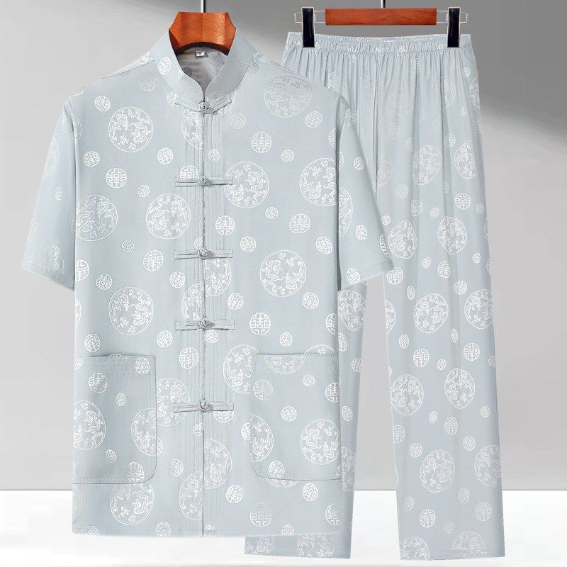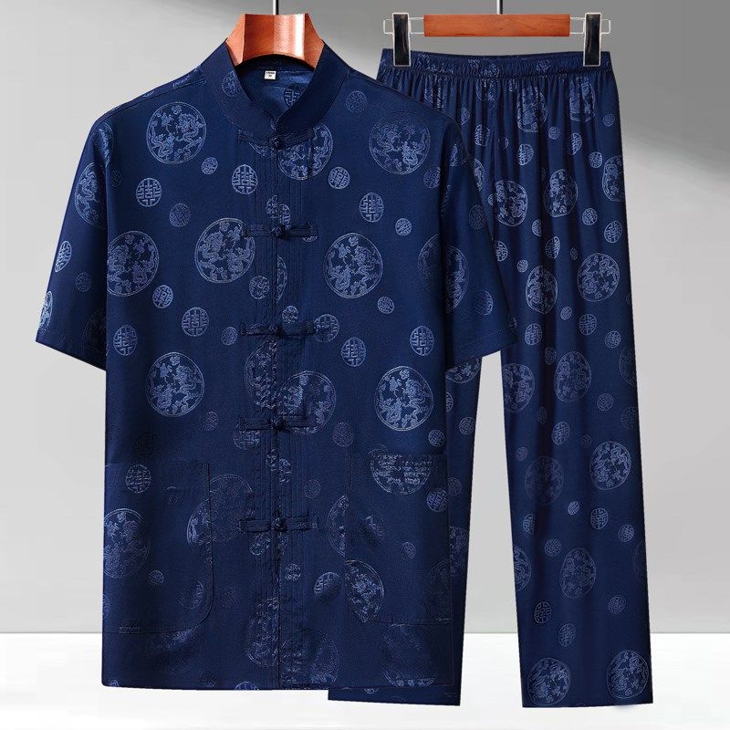 唐装男冰丝短袖夏季中老年爸爸装薄款套装老人爷爷衣服夏装中国风