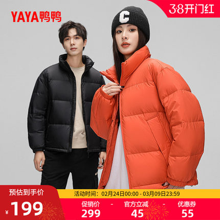 鸭鸭羽绒服男女同款短款立领外套