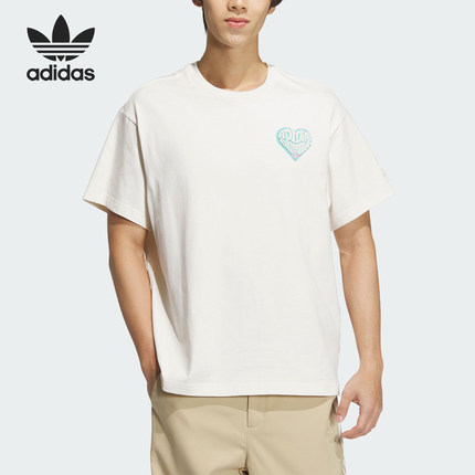Adidas/阿迪达斯官方正品三叶草男女款印花宽松圆领短袖T恤JE3469