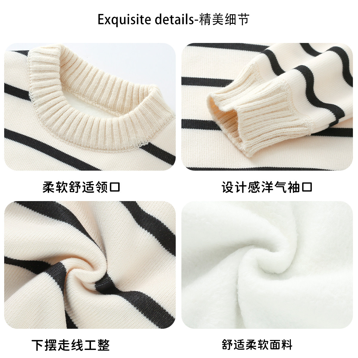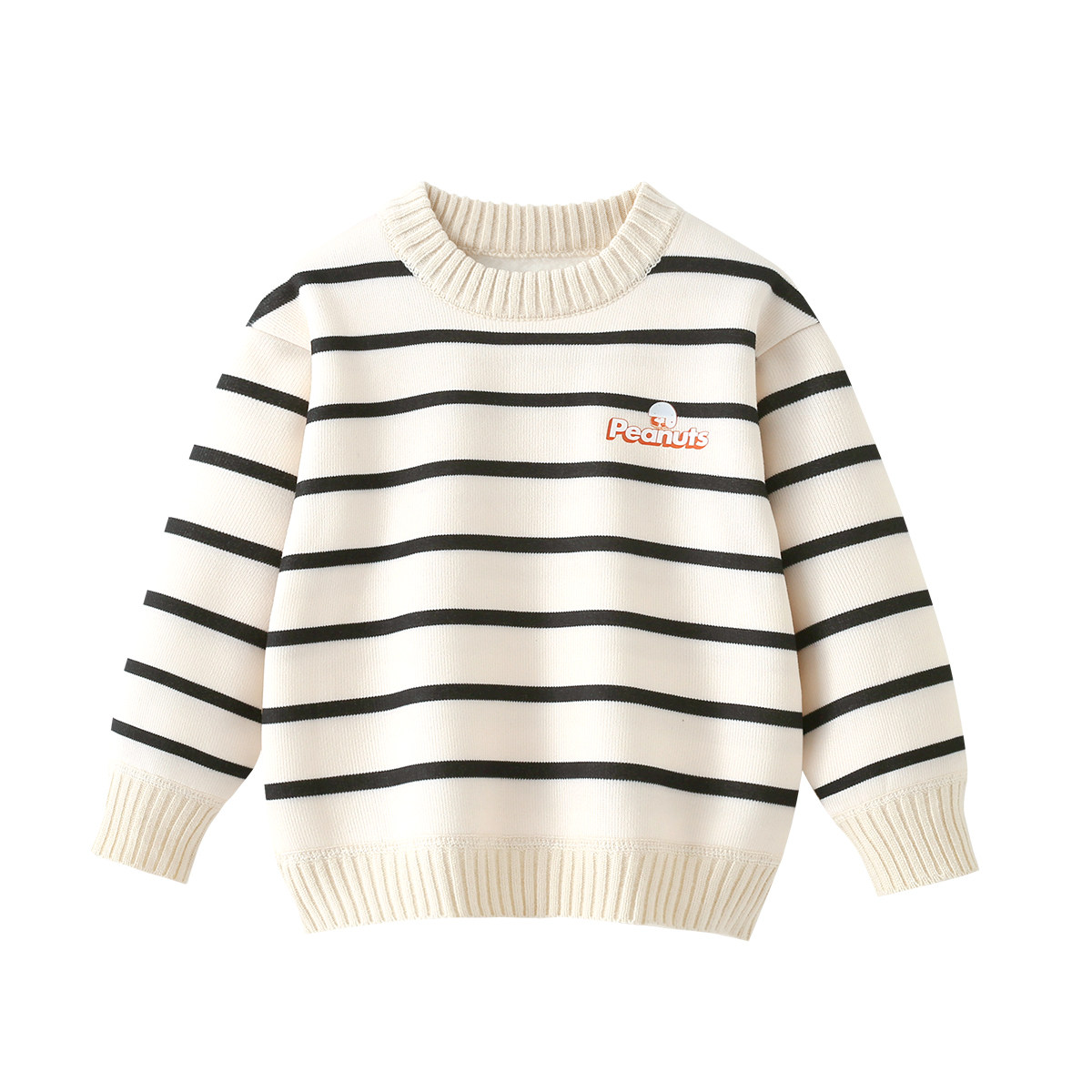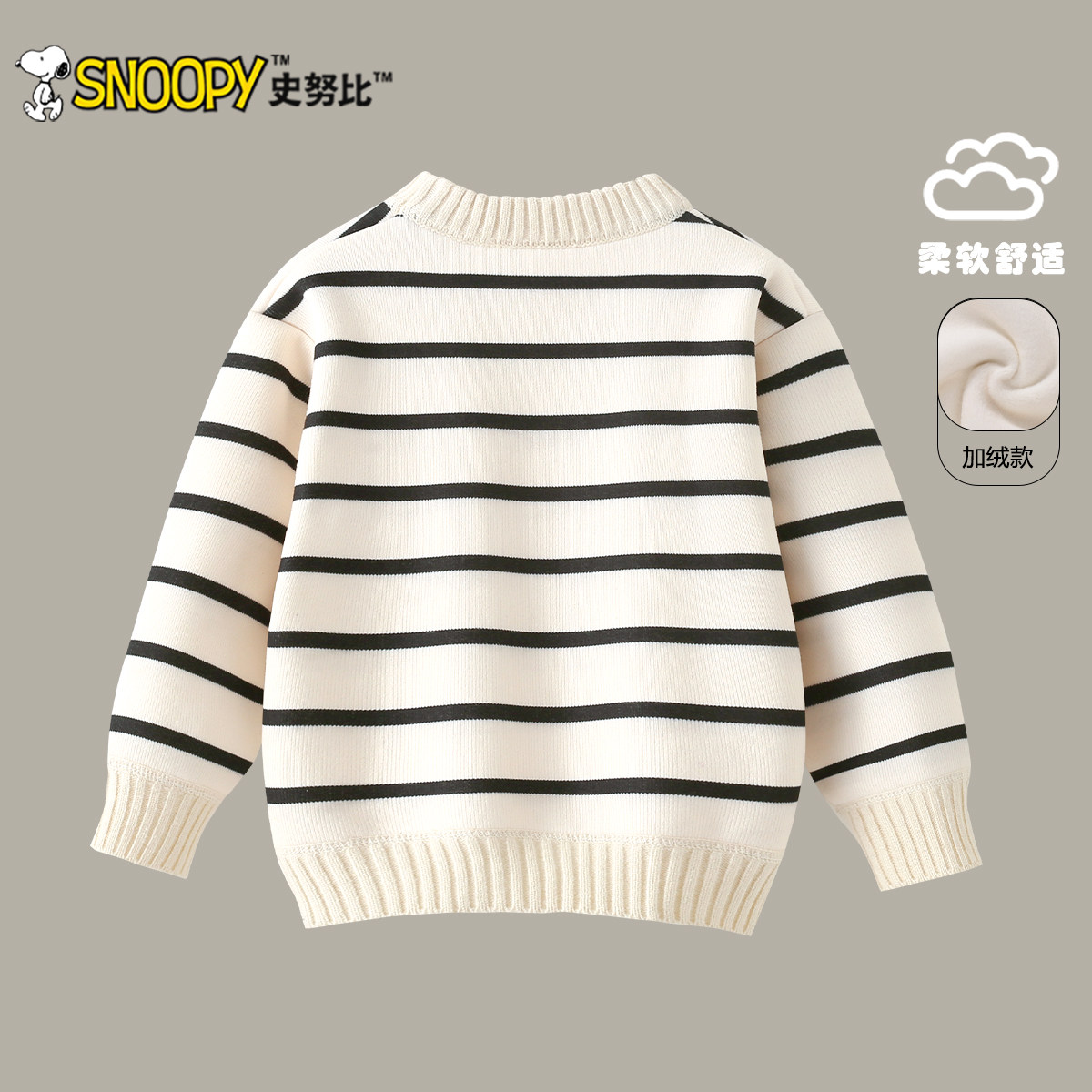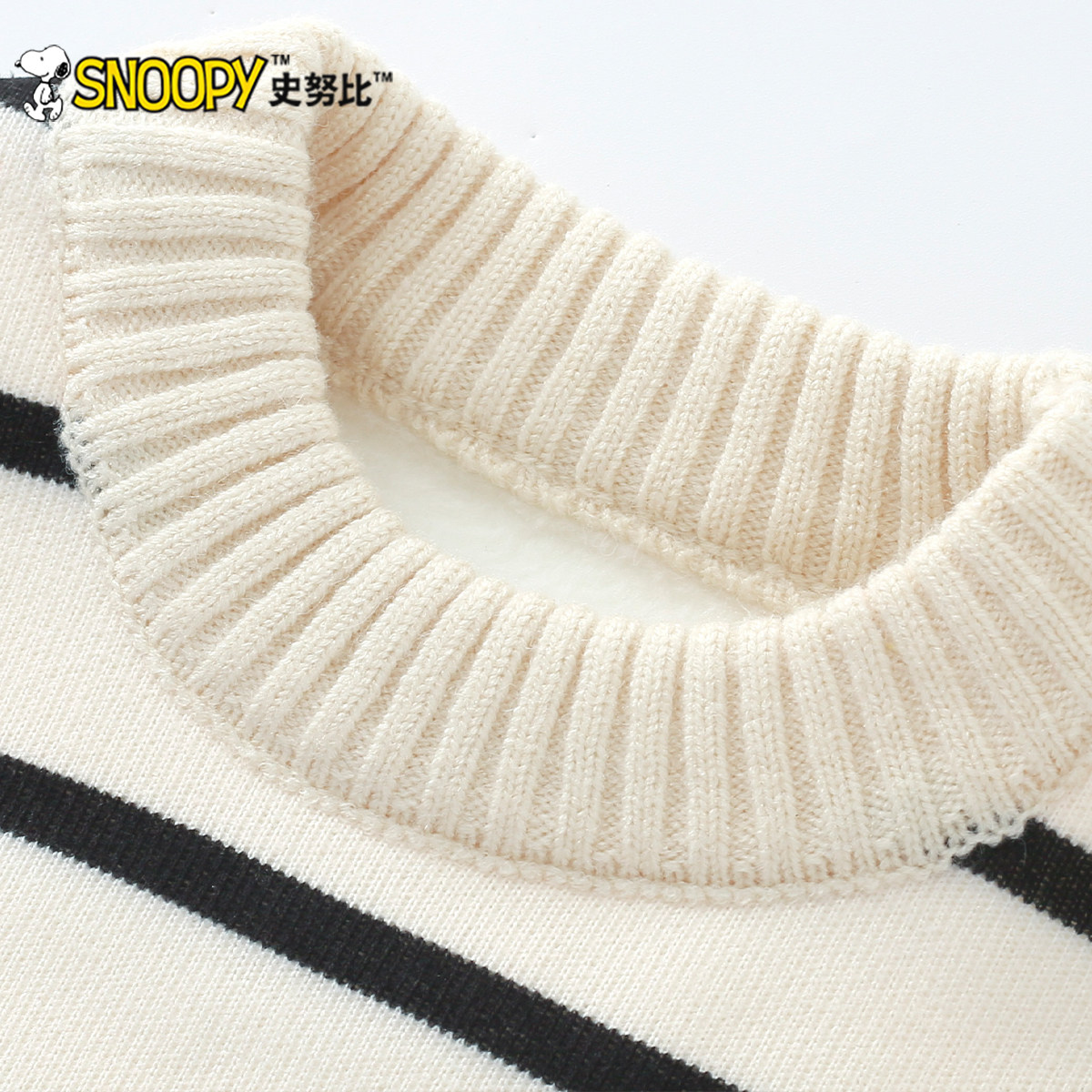 史努比儿童条纹毛衣2025秋冬新款女童加绒保暖针织衫男童套头上衣