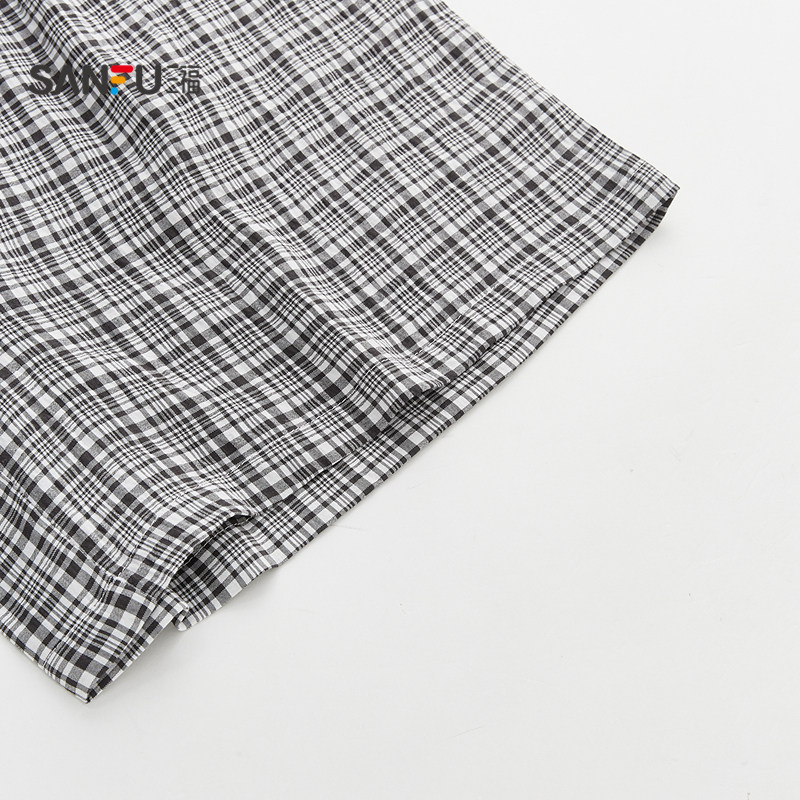 三福春夏季女款抗菌带胸杯睡衣套装小个子甜美花边吊带短裤家居服
