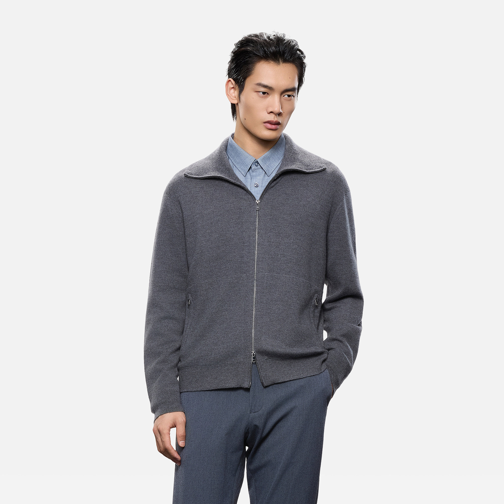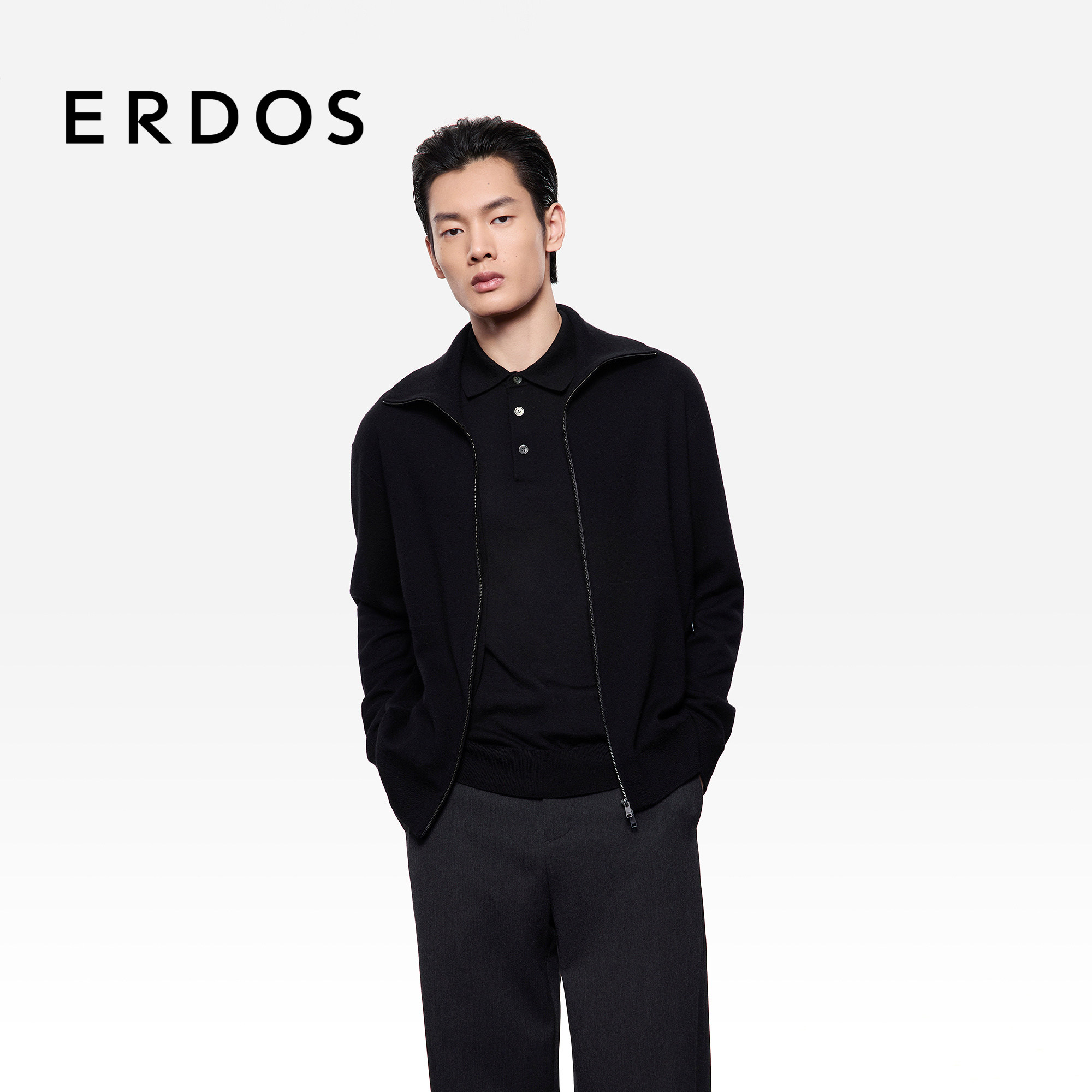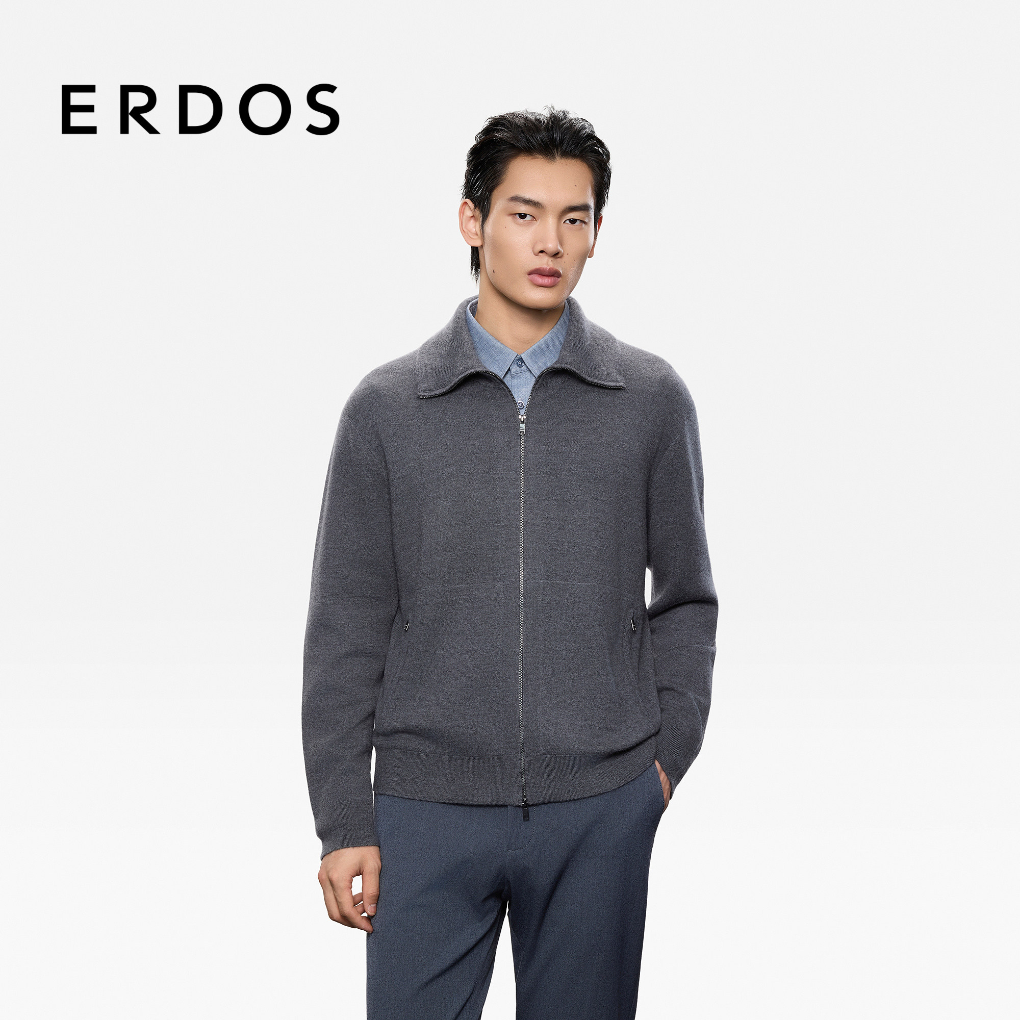 ERDOS 【头等舱系列】男装双提翻领羊绒夹克版型开衫25秋冬新品