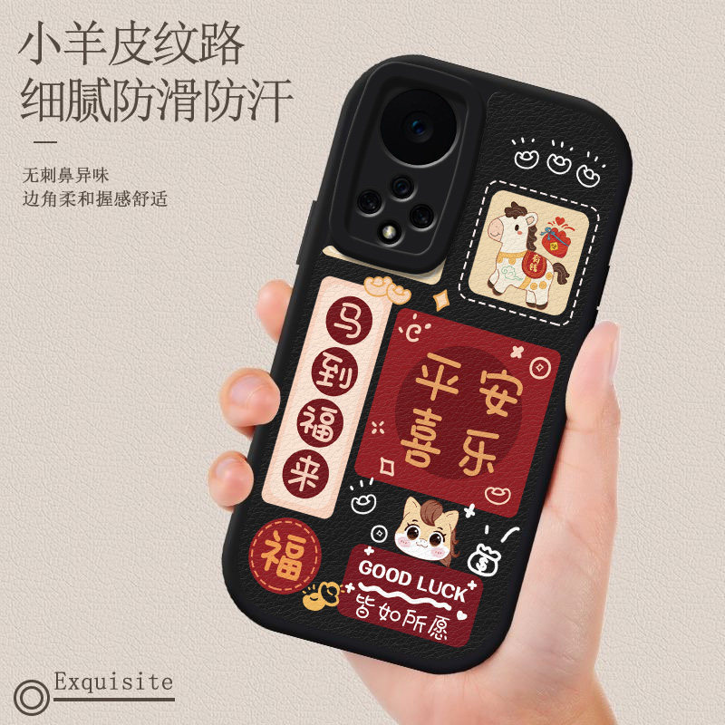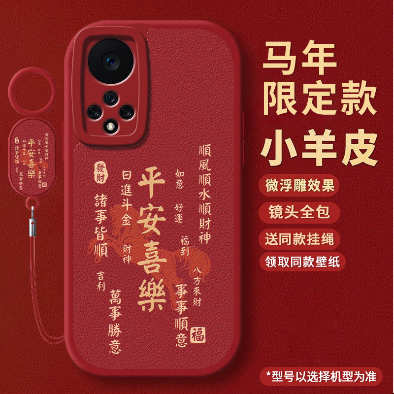 适用荣耀50手机壳软壳羊皮马年