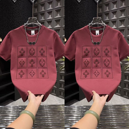 2025年夏季新款男士百搭重工钢印短袖T恤上衣半袖青少年时尚休闲