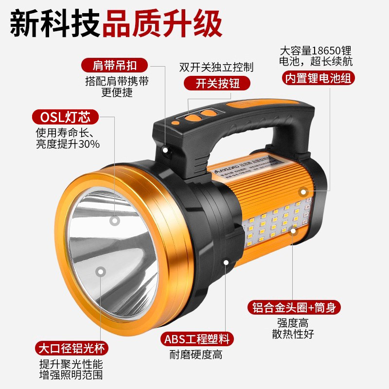 黄光手电筒强光超亮led灯远射超长续航充电矿灯大功率手提探照灯