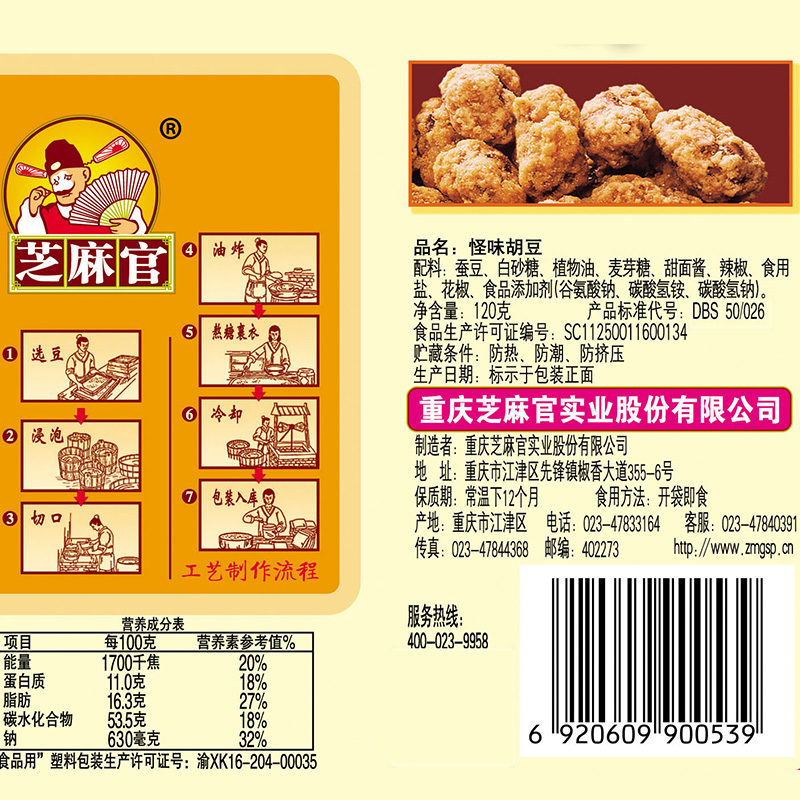芝麻官怪味胡豆重庆特产420g*7小吃零食休闲食品兰花豆蚕豆大礼包