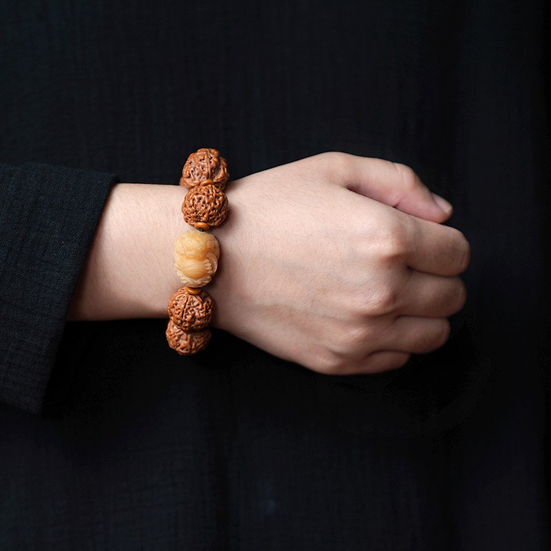 金刚菩提子手串男士精品尼泊尔原籽配饰菩提根貔貅文玩佛珠单圈