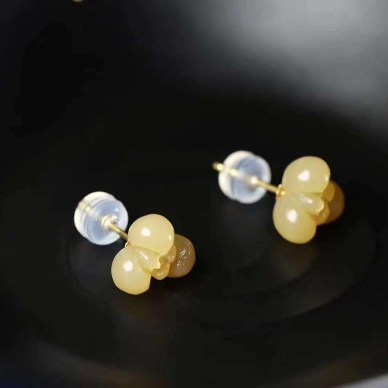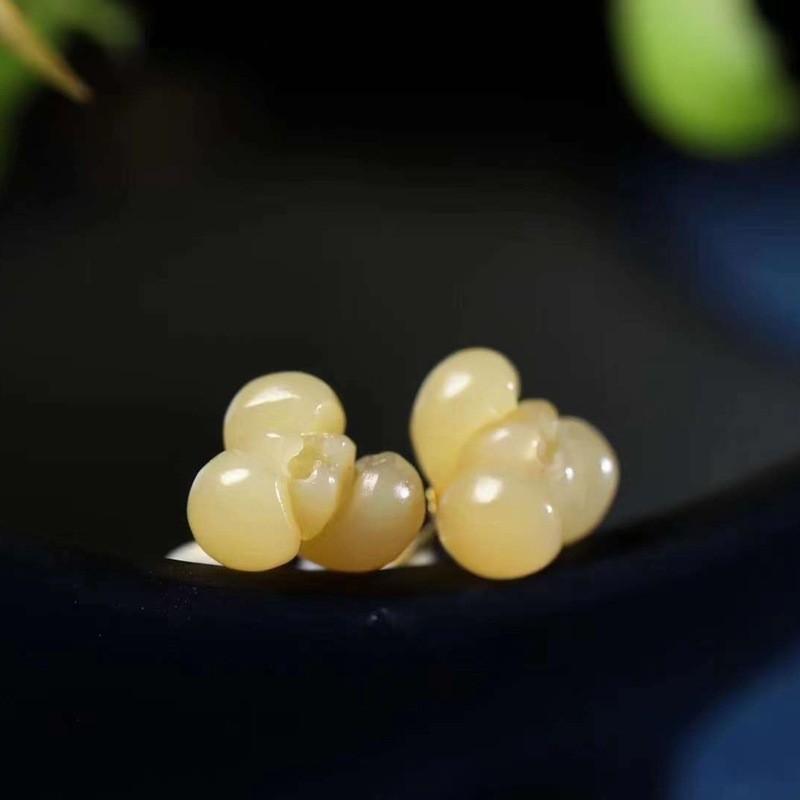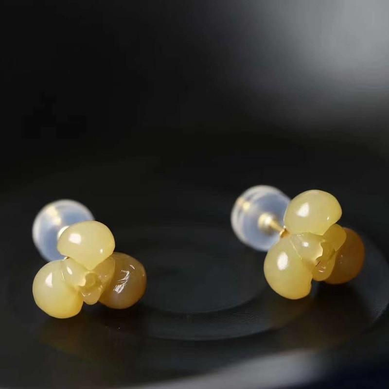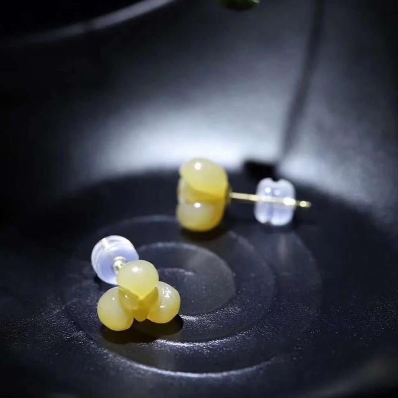 天然新疆和田玉玉器供应链且末糖料老料满糖色莲花耳钉玉石工艺品