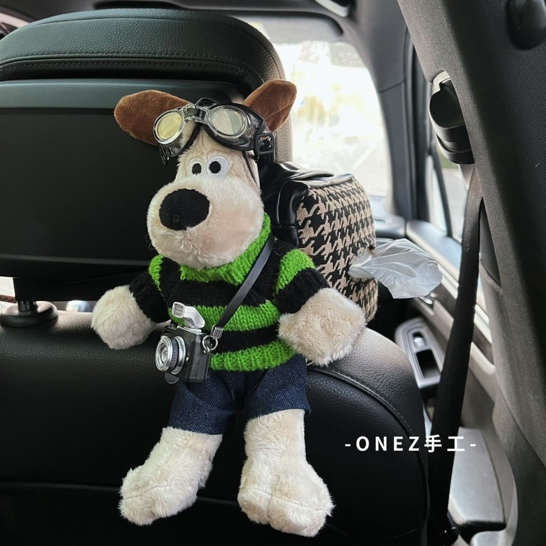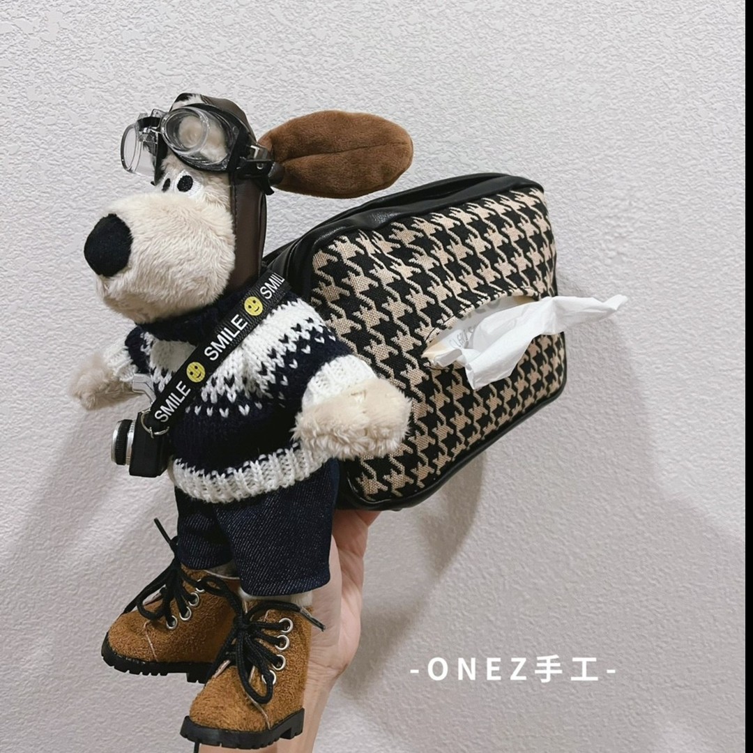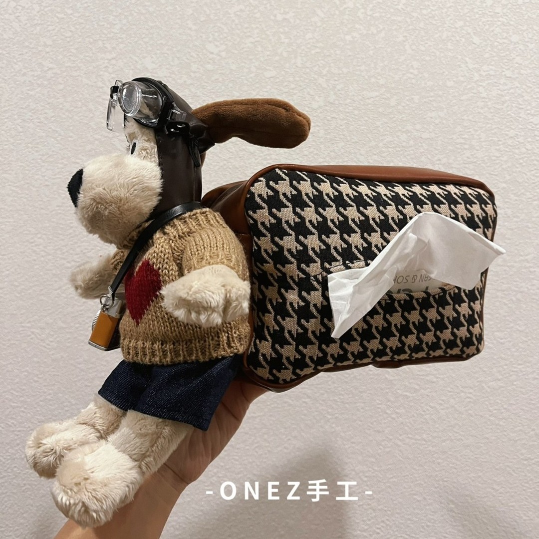 车载可爱狗狗公仔汽车扶手箱多功能绑带车内纸巾包车内抽纸巾盒女