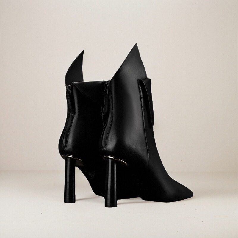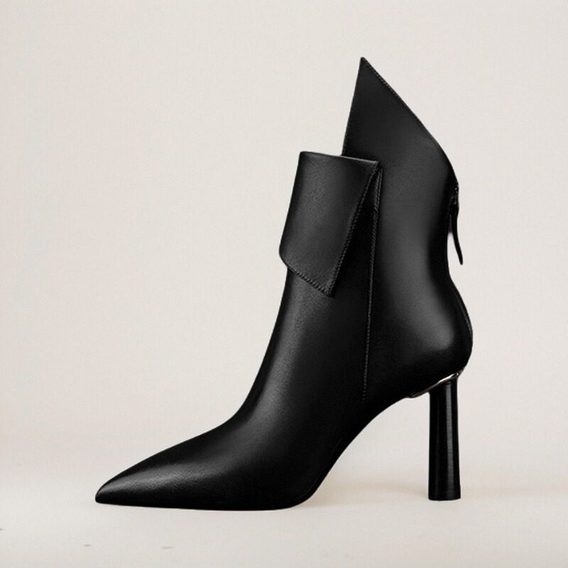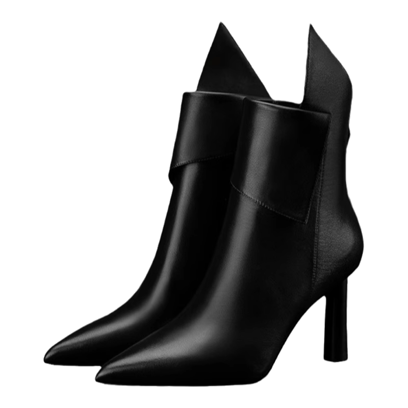 时尚气质黑色真皮高跟鞋短靴女2025新款粗跟低筒靴舒适小个子女靴