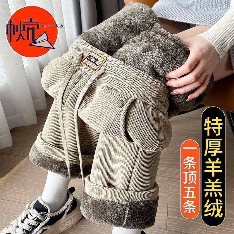 超厚加绒薄款牛仔阔腿女秋冬