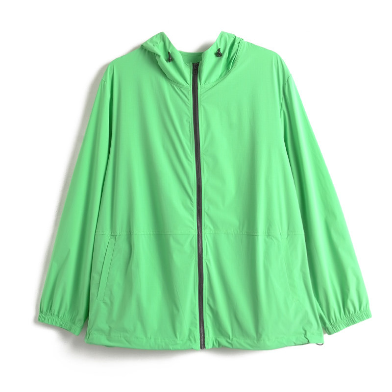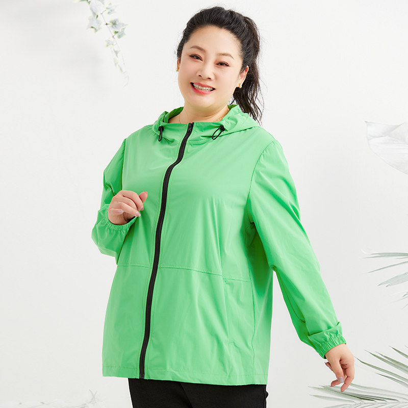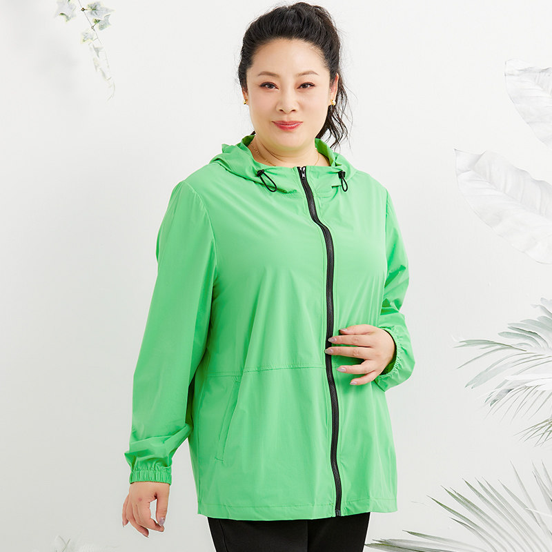 胖太太大码女装秋季新款连帽绿色中长休闲宽松风衣外套324310410
