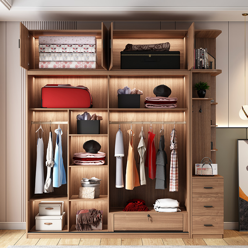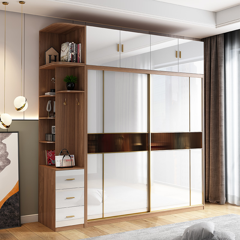 生态实木多层板拉门衣柜小户型家用卧室柜子移门胡桃色大衣橱