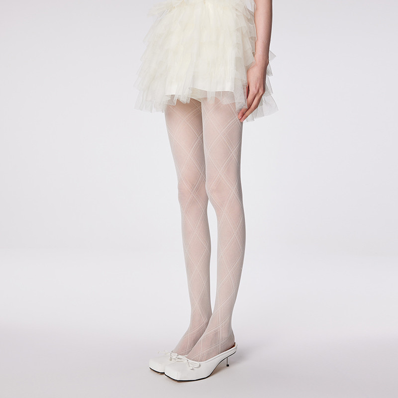 弥构夏季超薄菱格丝袜白丝打底裤