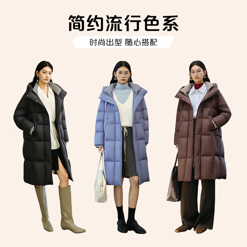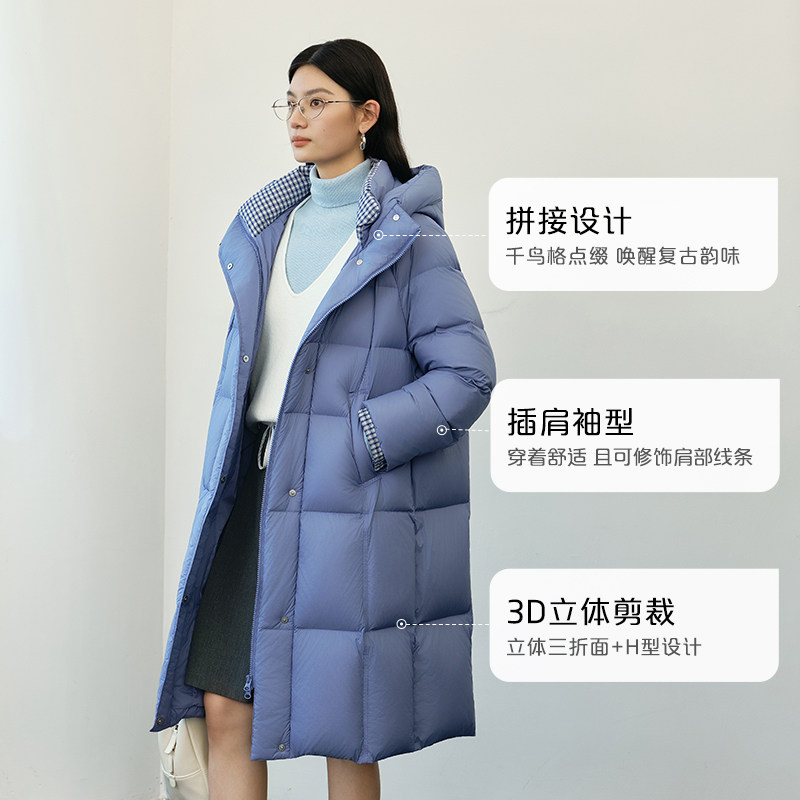 艾莱依秋冬新款千鸟格拼接羽绒服
