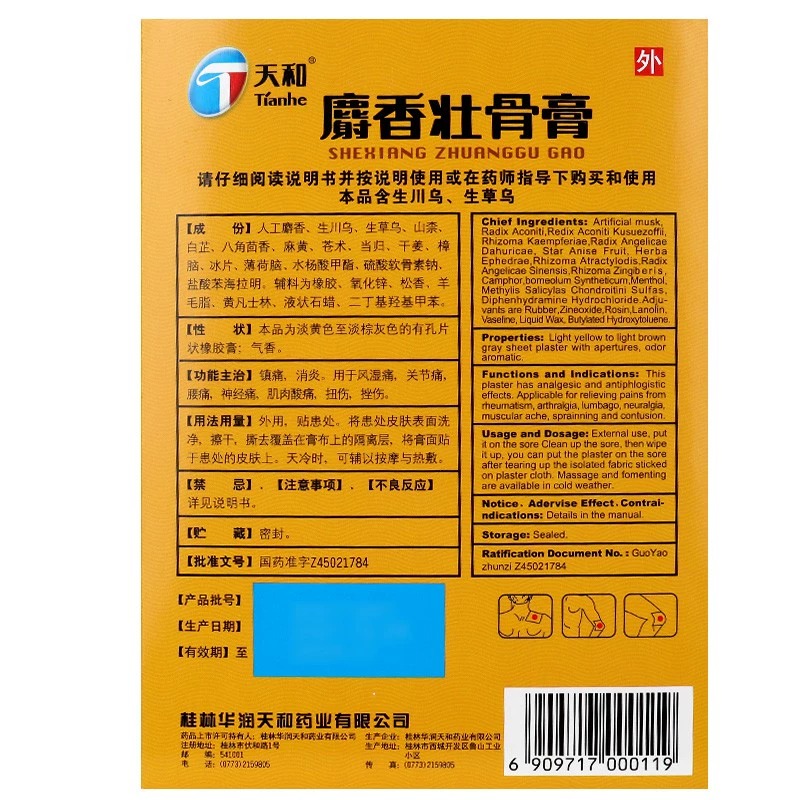 【天和】麝香壮骨膏5贴*2袋/盒