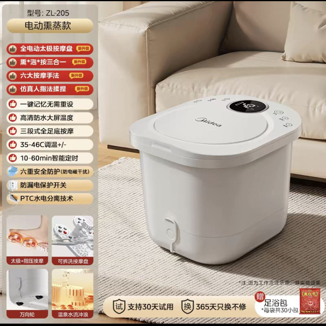 美的泡脚桶智能加热恒温家用全自动足浴桶养生按摩ZL205送家人礼