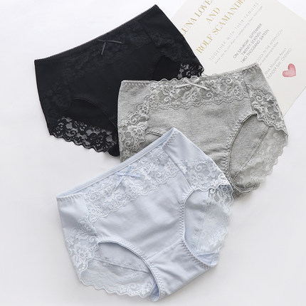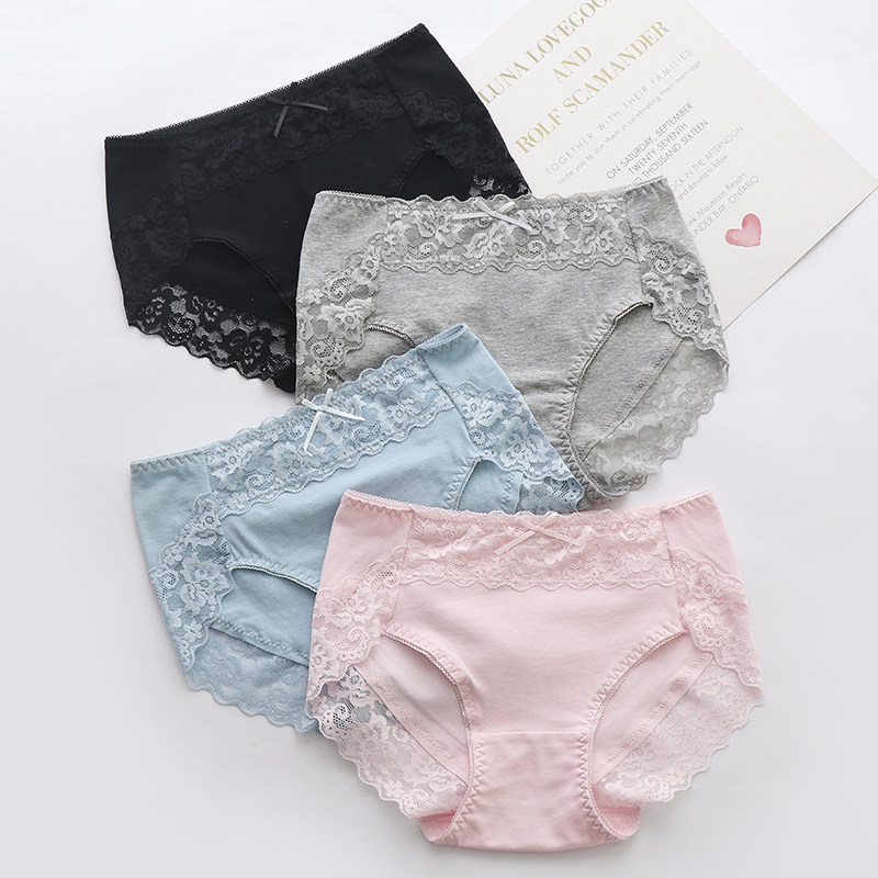 中腰内裤女纯棉底裆简约少女生透气蕾丝无痕包臀大码女士三角短裤