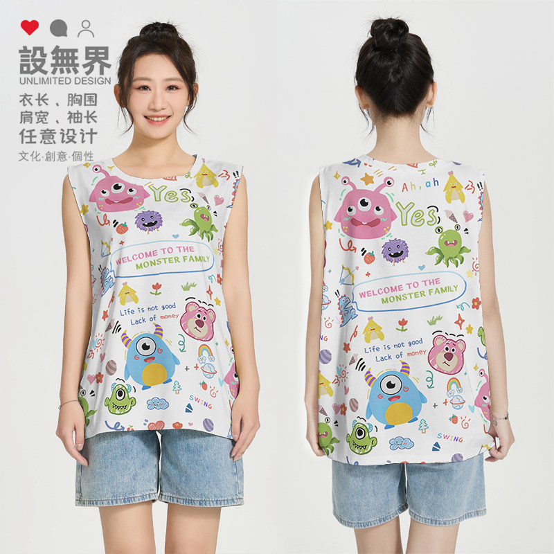 卡通动漫怪兽家族草莓小熊涂鸦大码速干背心男装女装0017设 无界