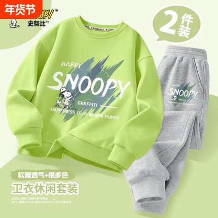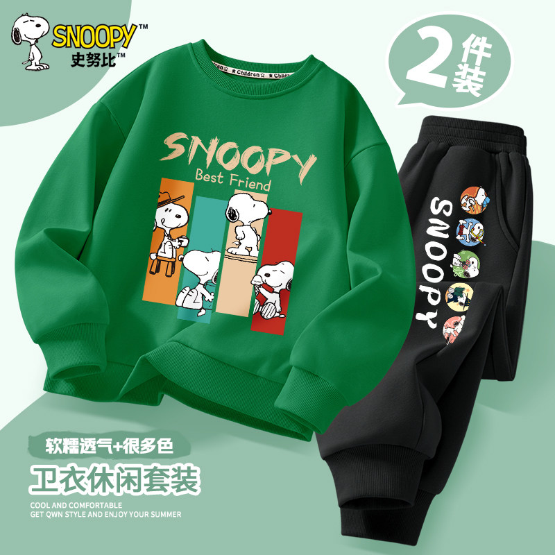 史努比童装男童套装2026冬季儿童加厚卫衣男大童秋冬运动长裤加绒