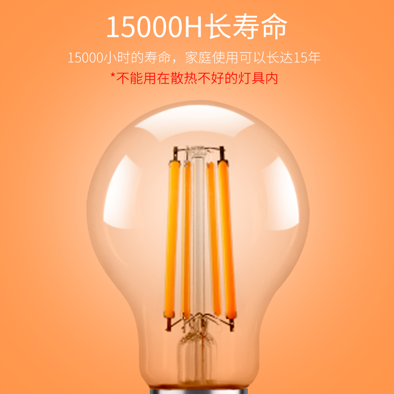 欧司朗LED复古灯泡A60透明E27螺口节能餐厅水晶吊灯灯丝泡1级能效