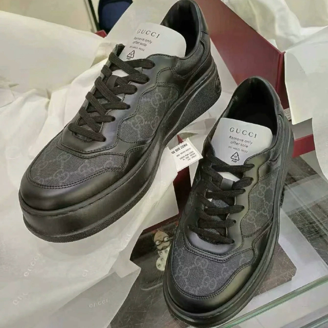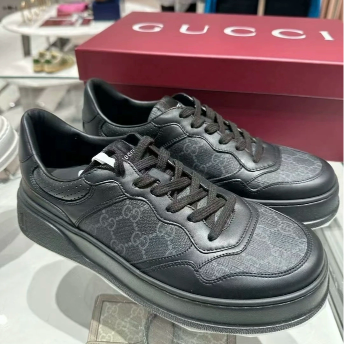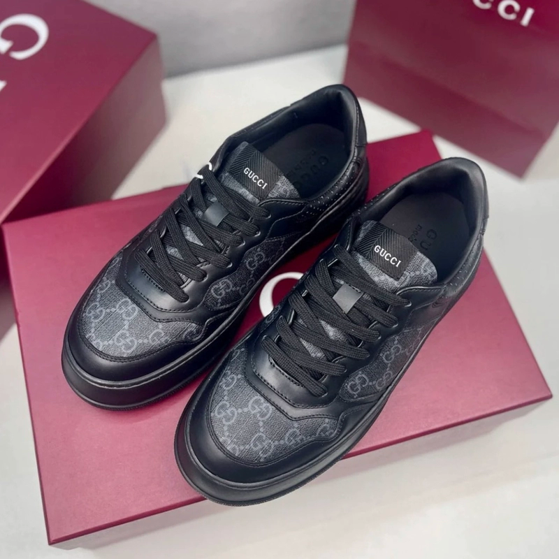 现货Gucci古驰古奇2025男士黑色老花饼干鞋休闲板鞋运动鞋 669582