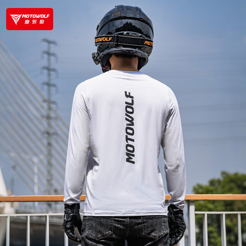 摩多狼骑行服夏季长袖摩托车机车速干透气高弹排汗衫打底衣公路男