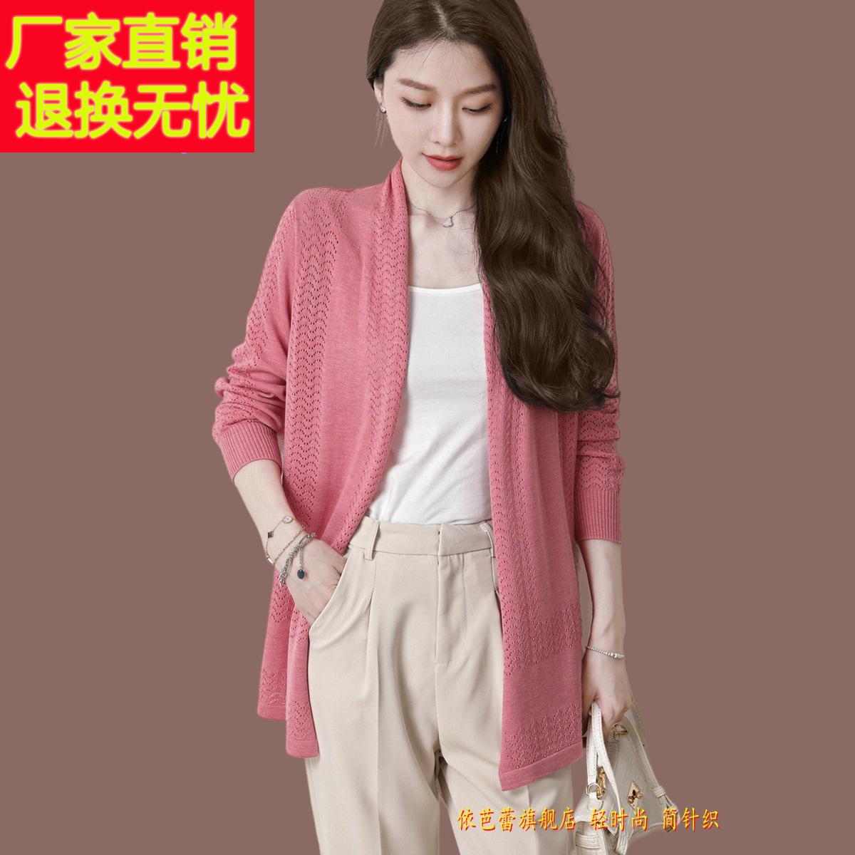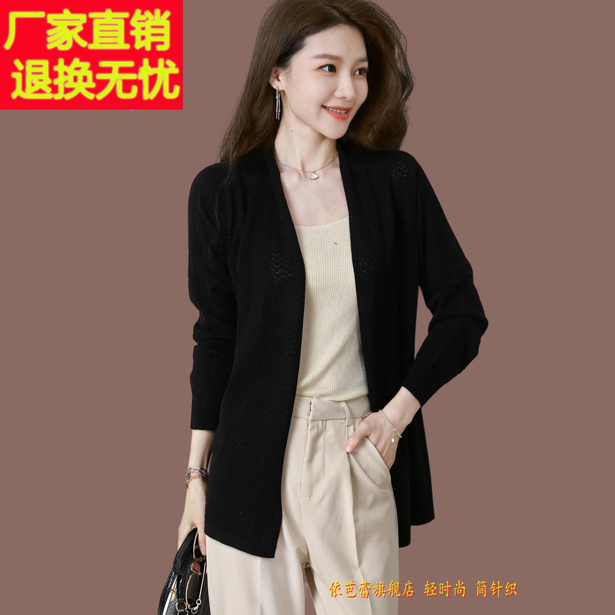 中长款针织衫开衫女春秋2024新款外搭羊毛披肩早秋镂空毛衣外套薄