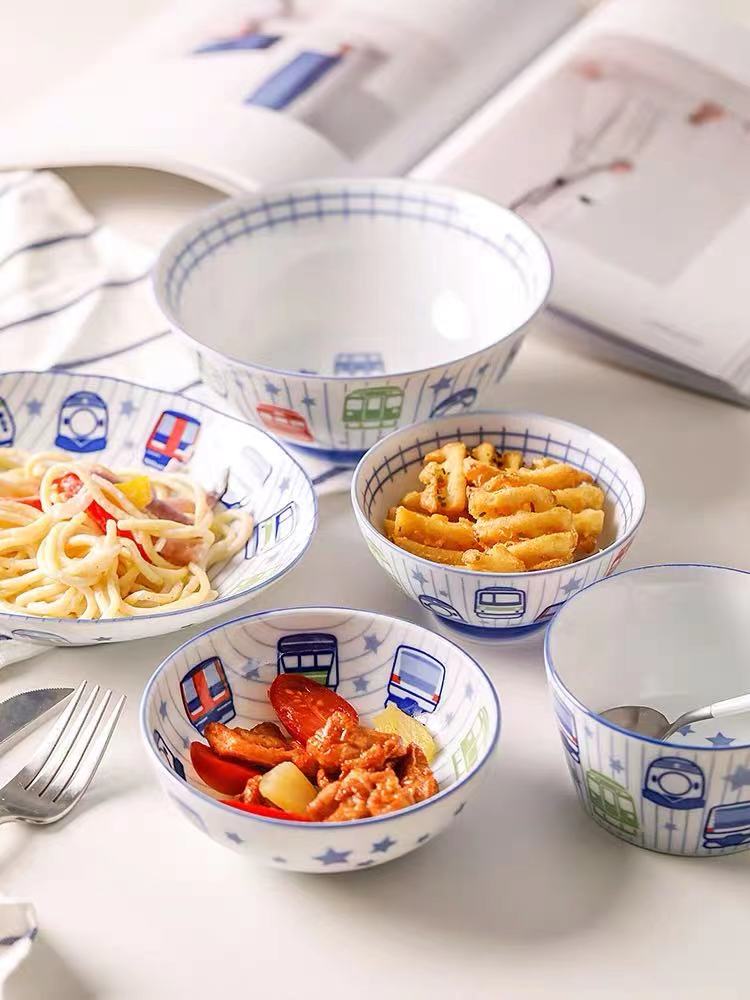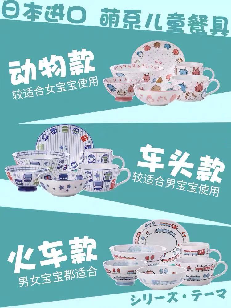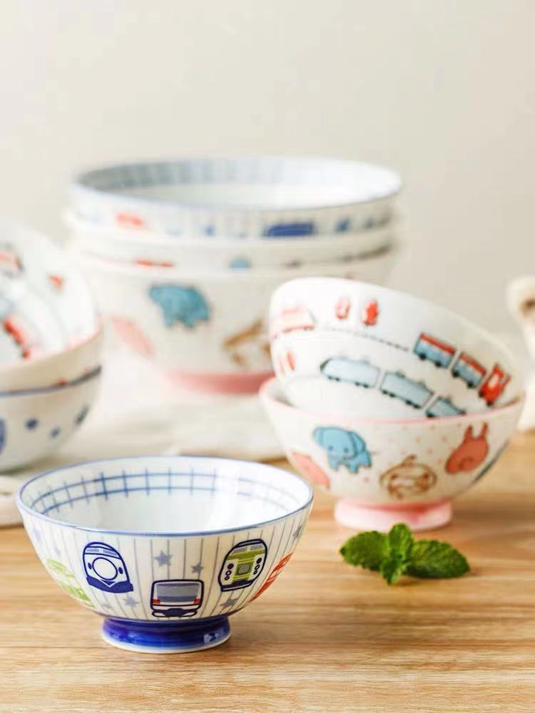 日本原装进口釉下彩儿童碗日式餐具釉下饭碗卡通可爱陶瓷家用面碗