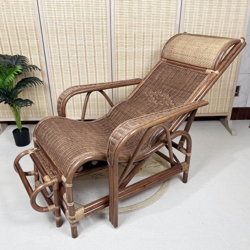 天然藤椅躺椅折叠老人午休椅靠背阳台家用休闲手工腾椅藤编真藤