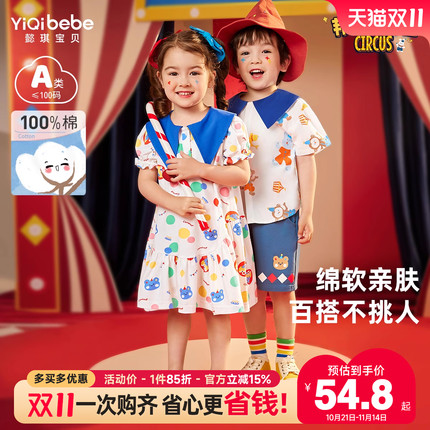 男童衬衫夏季女童裙子夏款宝宝衣服夏款一岁婴儿短袖上衣儿童童装