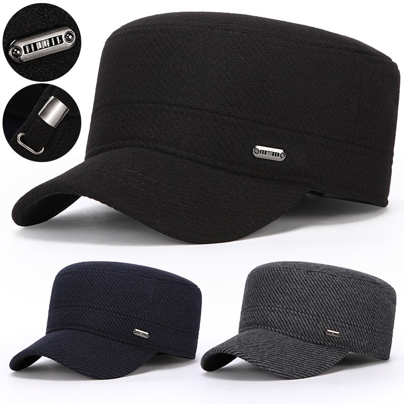 老人帽子男冬全封口平顶帽爸爸鸭舌帽秋冬保暖老年人爷爷护耳冬帽