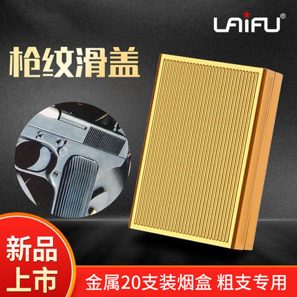 新品来福烟盒20支硬包铝合金枪纹滑盖自动超薄便携香菸盒个性创意