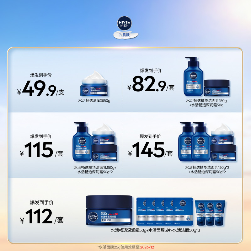 妮维雅男士深润霜滋润保湿干燥补水面霜脸部护肤品官方正品