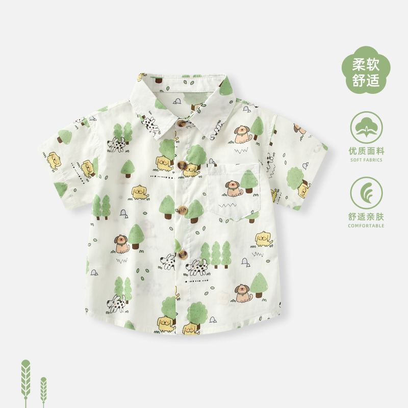男童衬衫夏装薄款衣服2025新款宝宝T恤夏季短袖衬衣幼儿洋气上衣