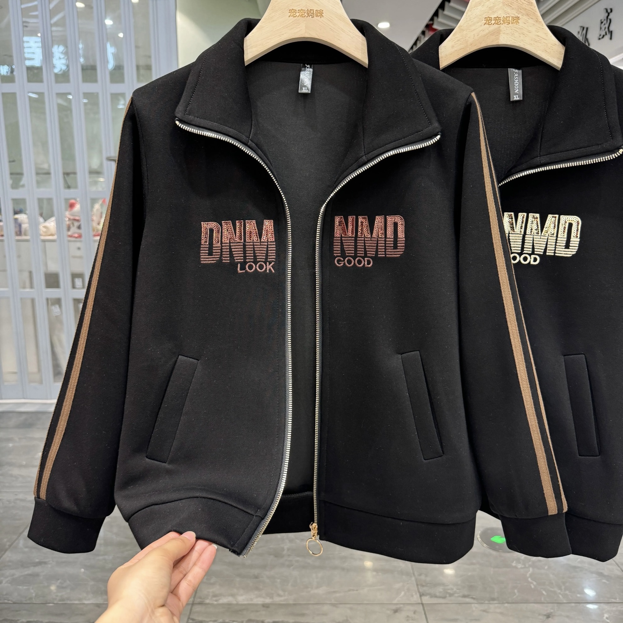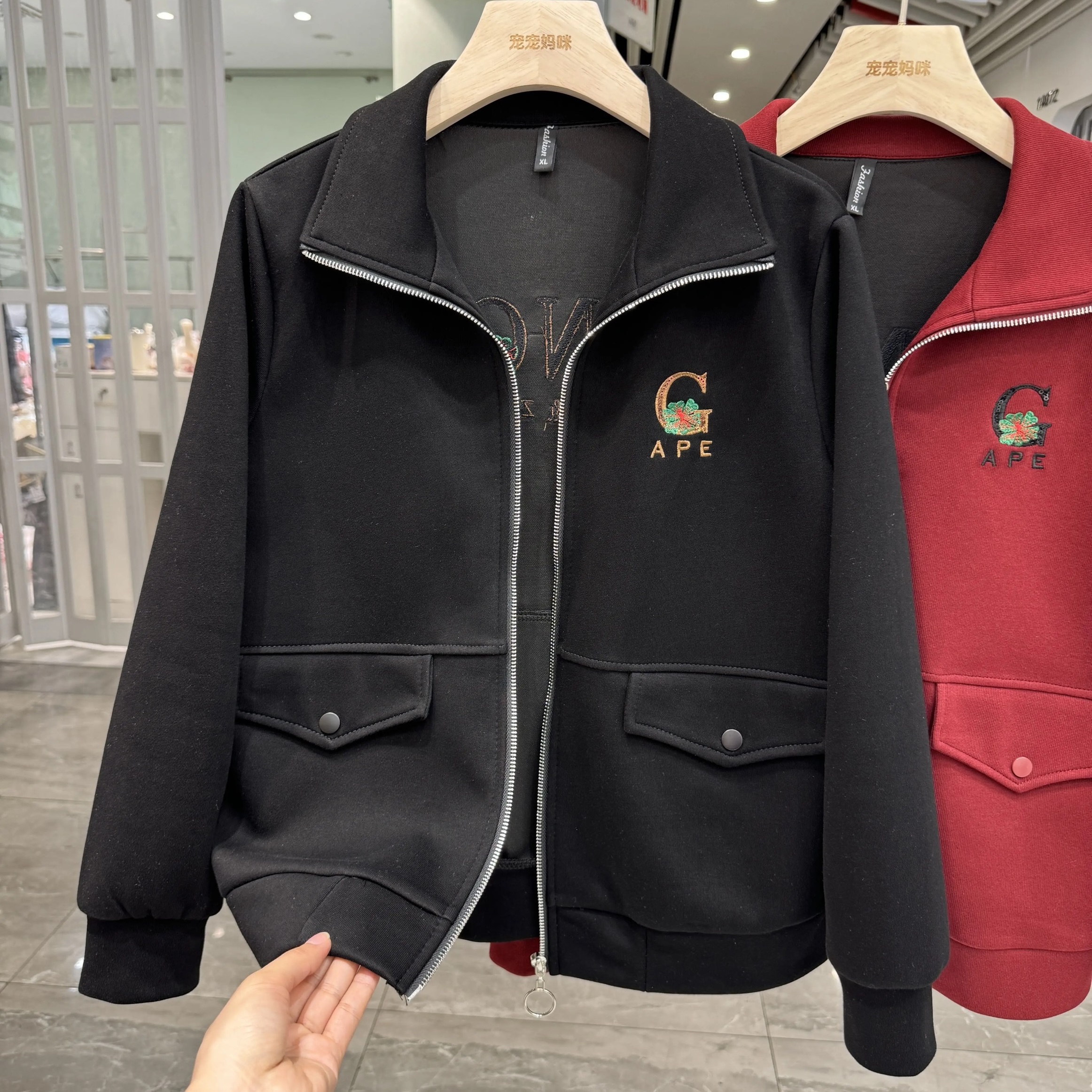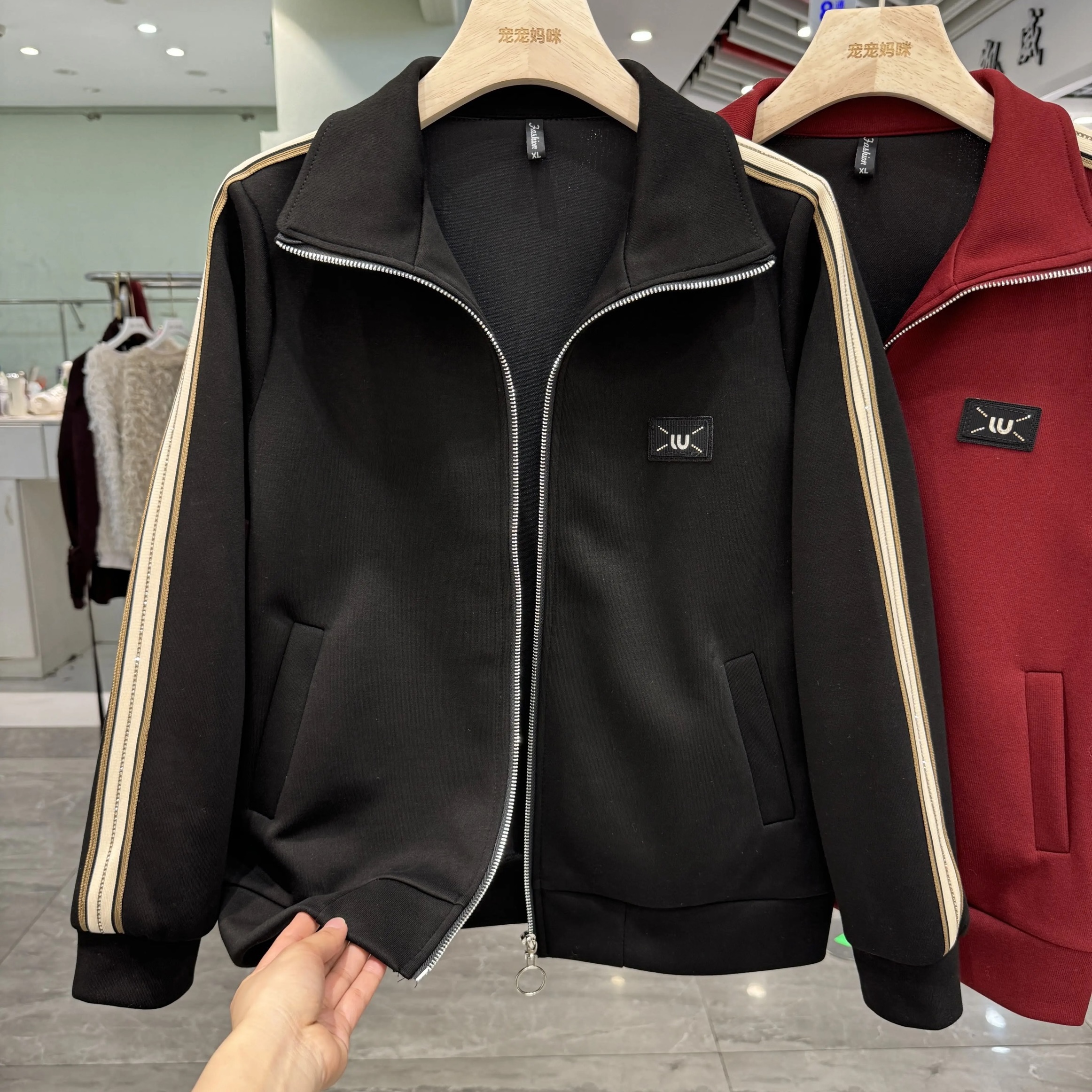 休闲妈妈装宽松夹克外套秋季新款翻领短款上衣中老年时尚运动服女