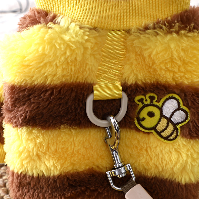 狗狗秋冬衣服小型犬冬天保暖加绒冬装带牵引环四脚衣蜜蜂造型泰迪
