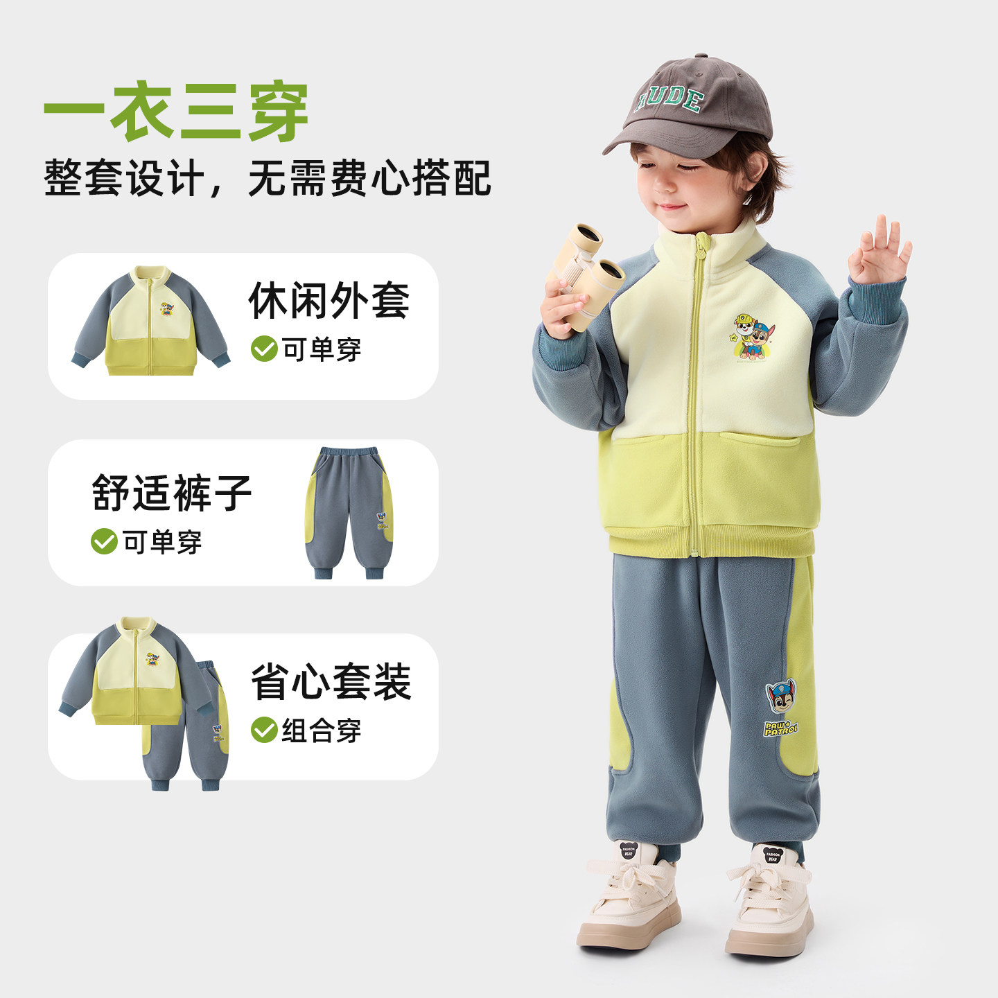 汪汪队男童冬装套装2025新款冬季宝宝男孩加绒加厚保暖儿童运动服