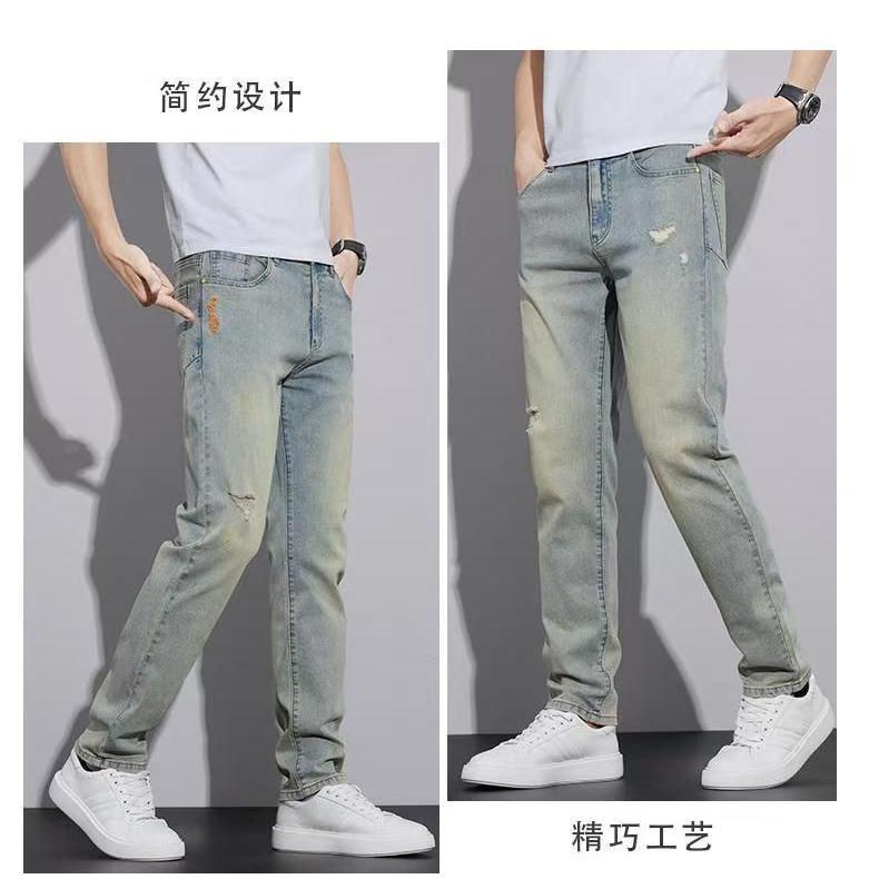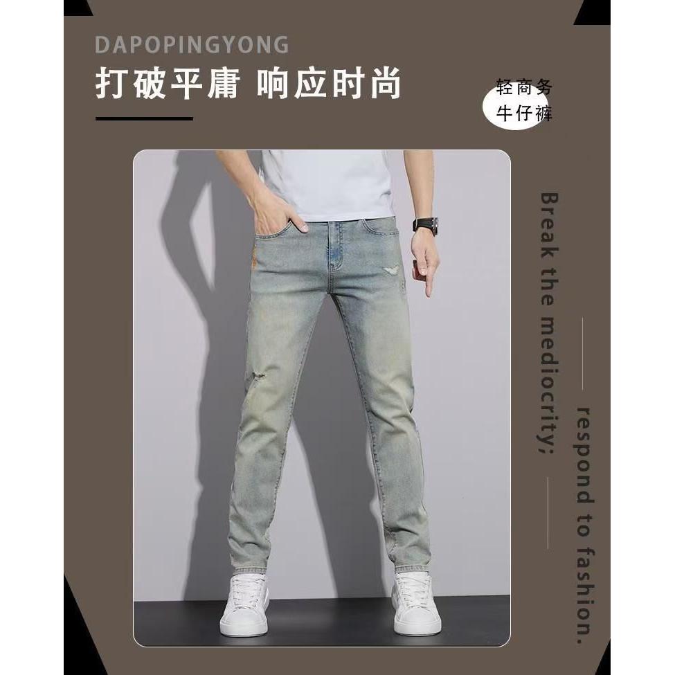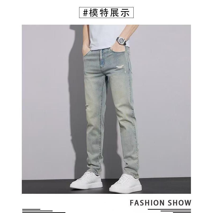 破洞牛仔裤男士潮牌2025夏季新款修身水洗休闲百搭弹力小脚九分裤