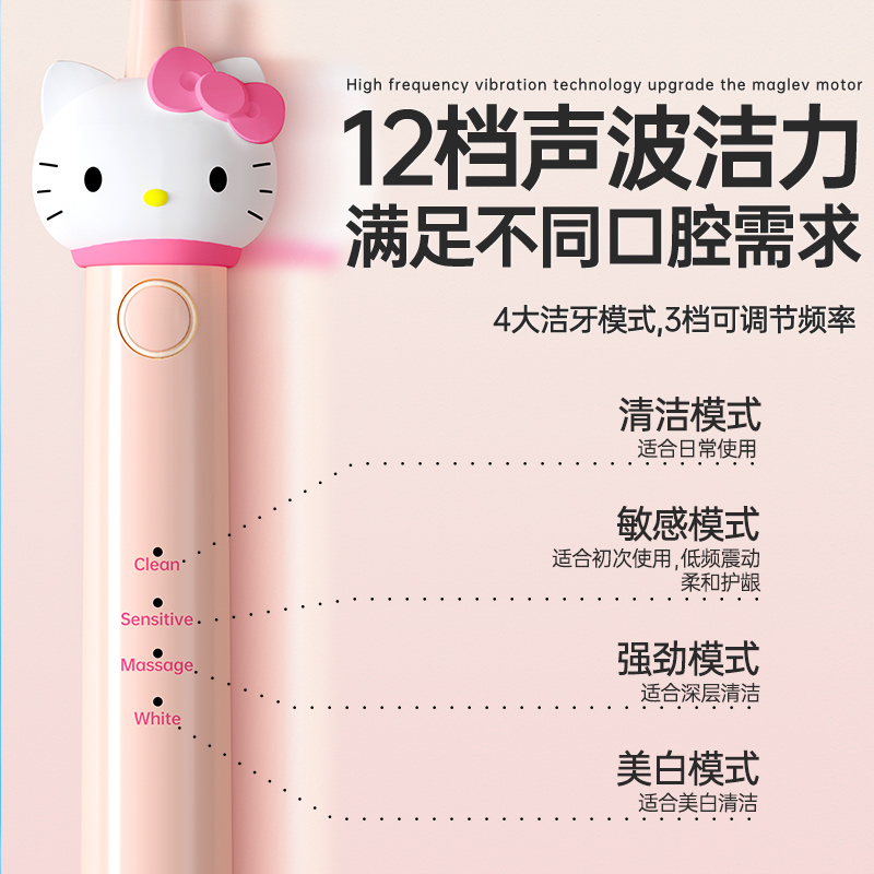 凯蒂猫电动牙刷成人女生礼物充电式声波学生党家用软毛生日