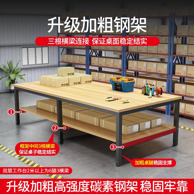工作台双层工厂桌裁剪台仓库打包台车间包装操作台服装检验台桌子