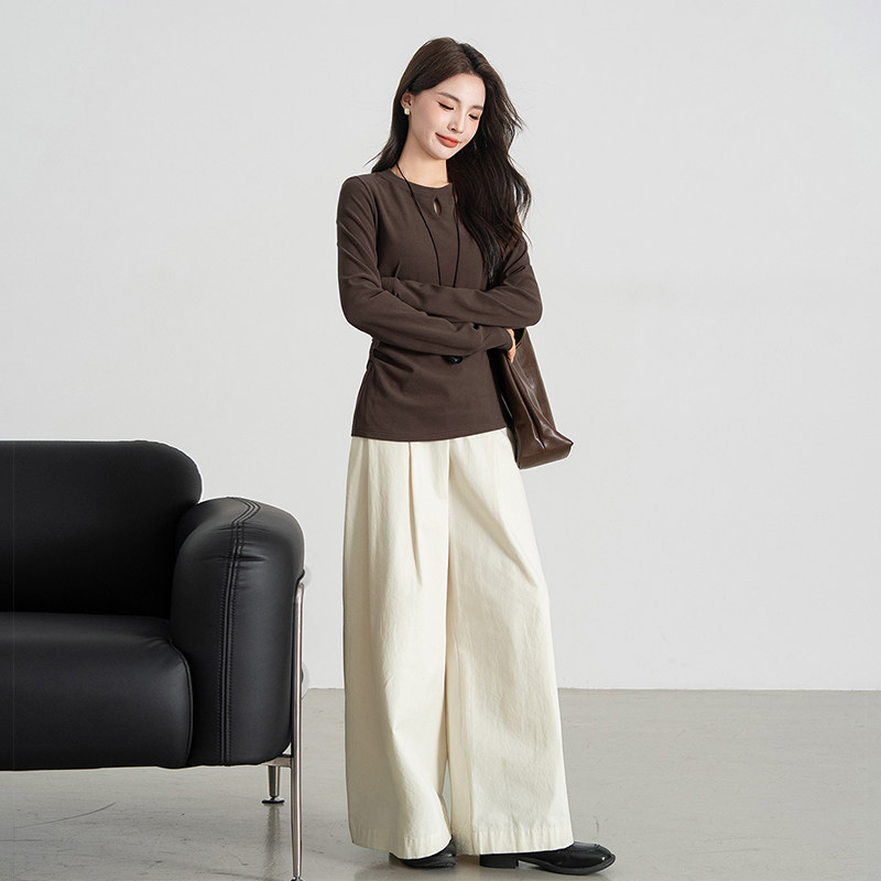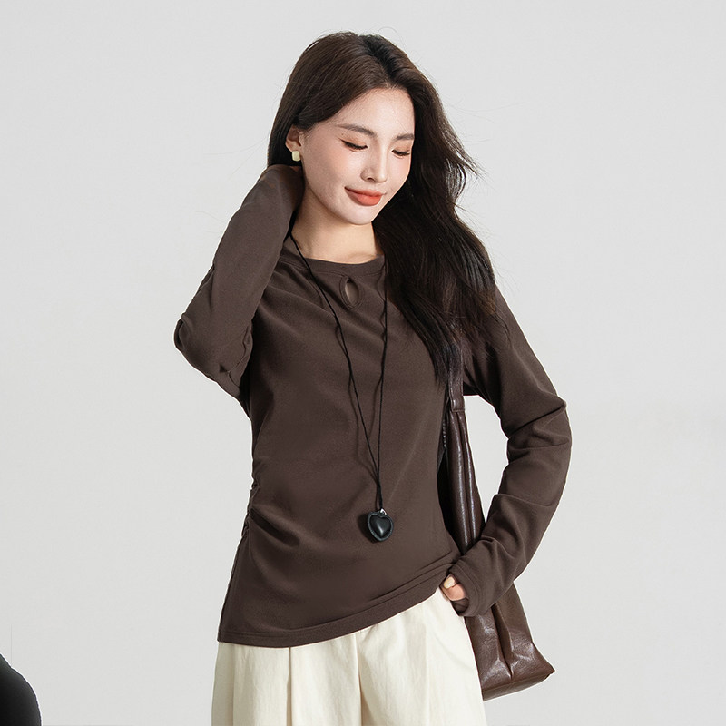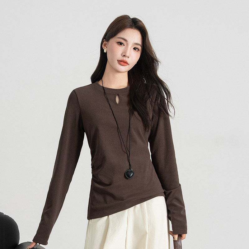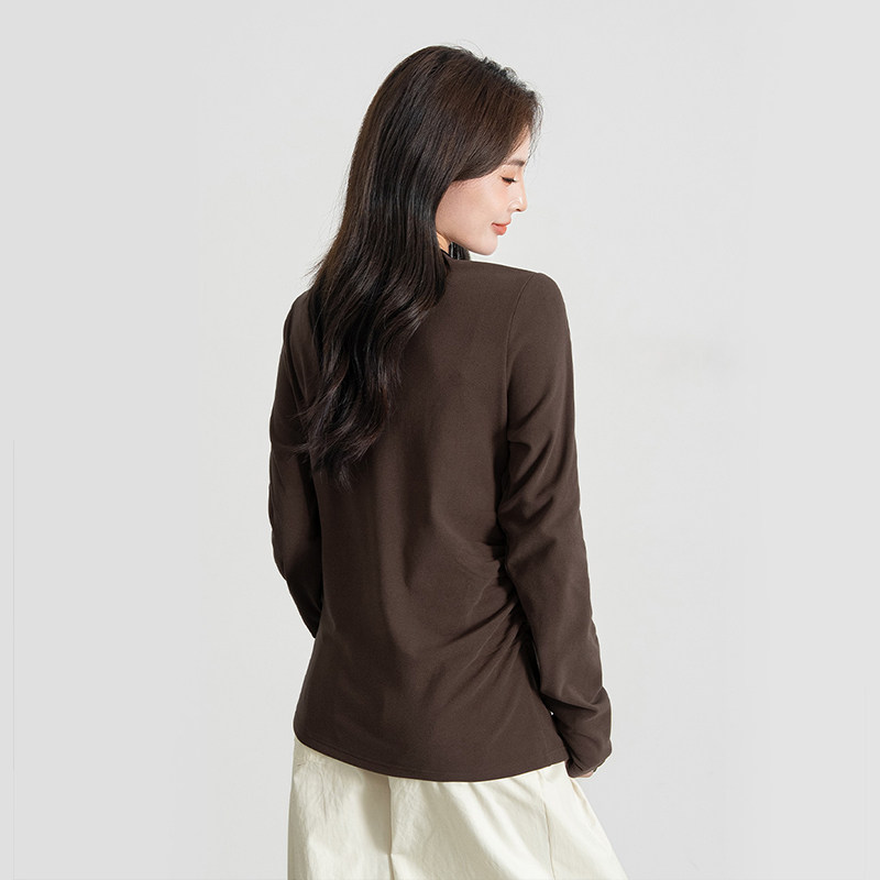 热风女士美拉德复古T恤简约舒适高弹打底衫秋冬女款百搭休闲内搭
