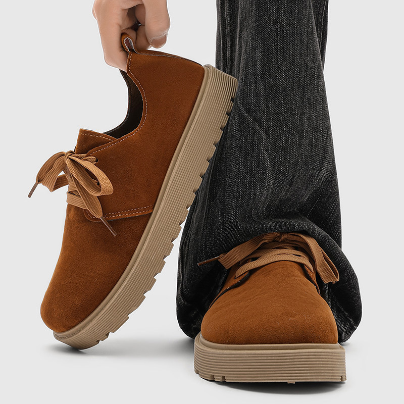 男鞋冬季翻毛皮休闲大头鞋厚底增高防滑运动板鞋男士复古英伦皮鞋