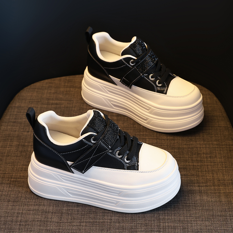 厚底内增高9CM魔术贴小白鞋女2025秋季新款韩版单鞋松糕休闲板鞋