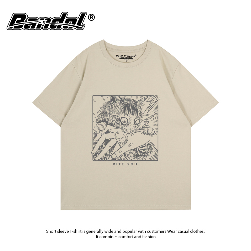 日系原宿风漫画少女感印花黑色短袖t恤女oversize大码纯棉上衣潮