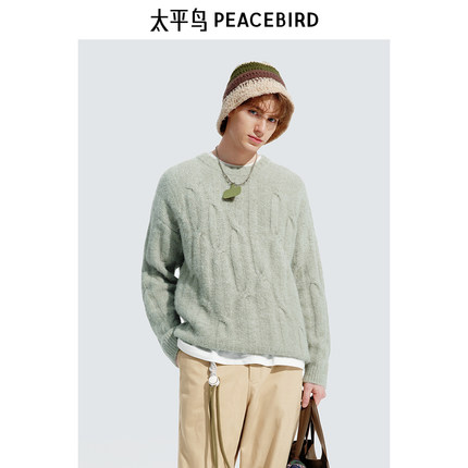 【商场同款】太平鸟男装羊毛毛衣冬圆领绞花针织衫B2EBE4522