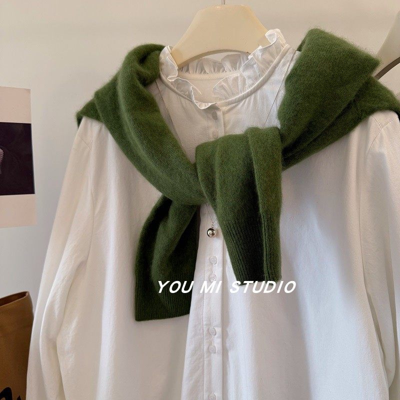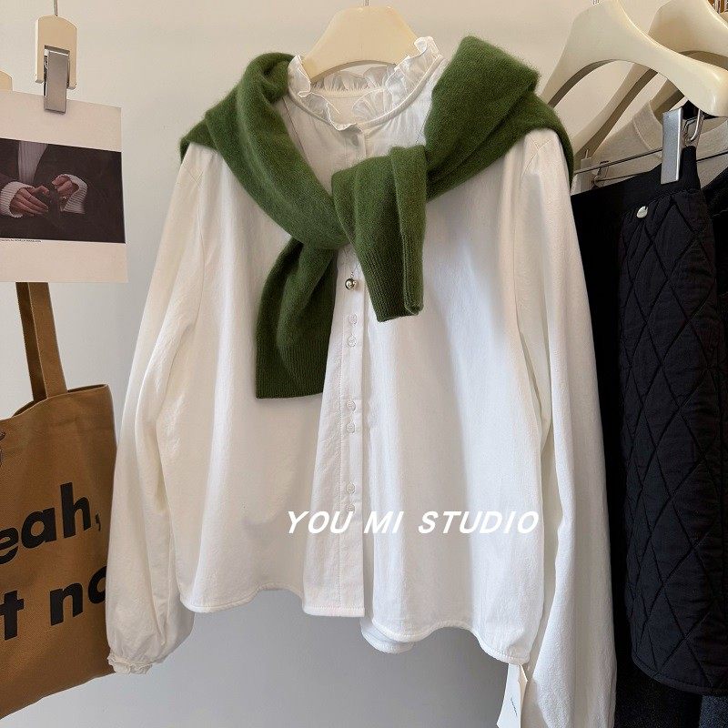 浪漫氛围~双扣设计 木耳花边领减龄气质叠穿加绒版长袖白衬衫女冬