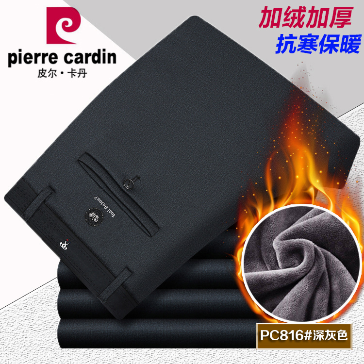 皮尔卡丹休闲裤男秋冬季加绒加厚款弹力男裤商务直筒免烫中年裤子